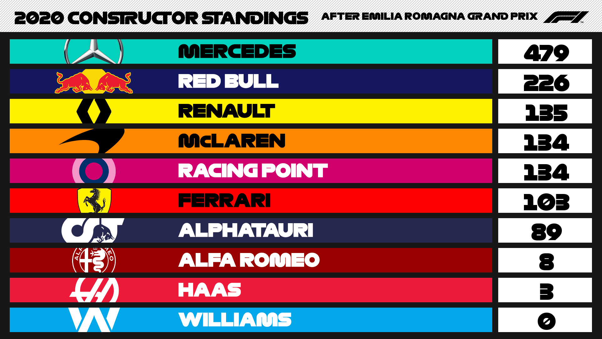 2020 Constructor Standings After The Russian Grand Prix Formula1